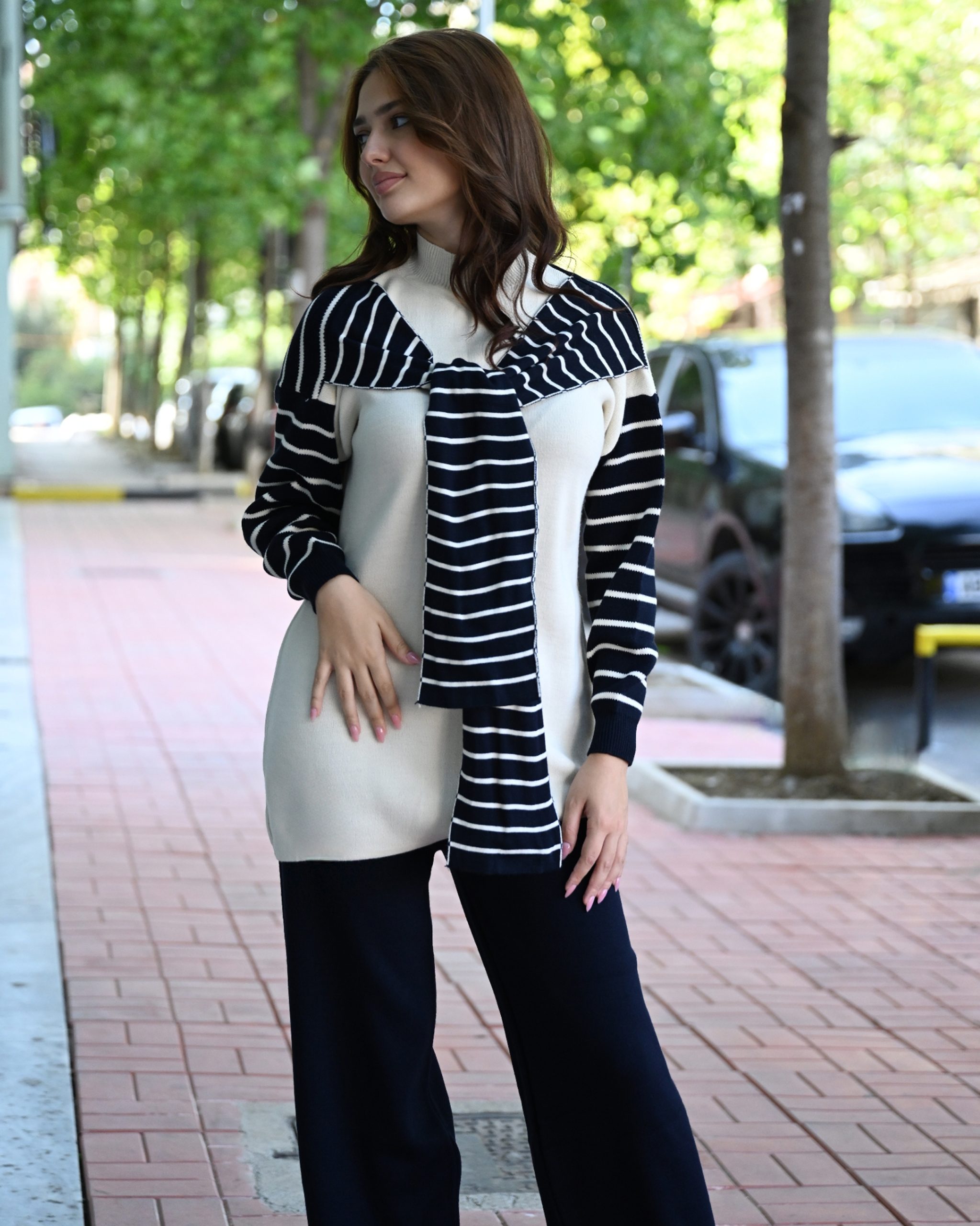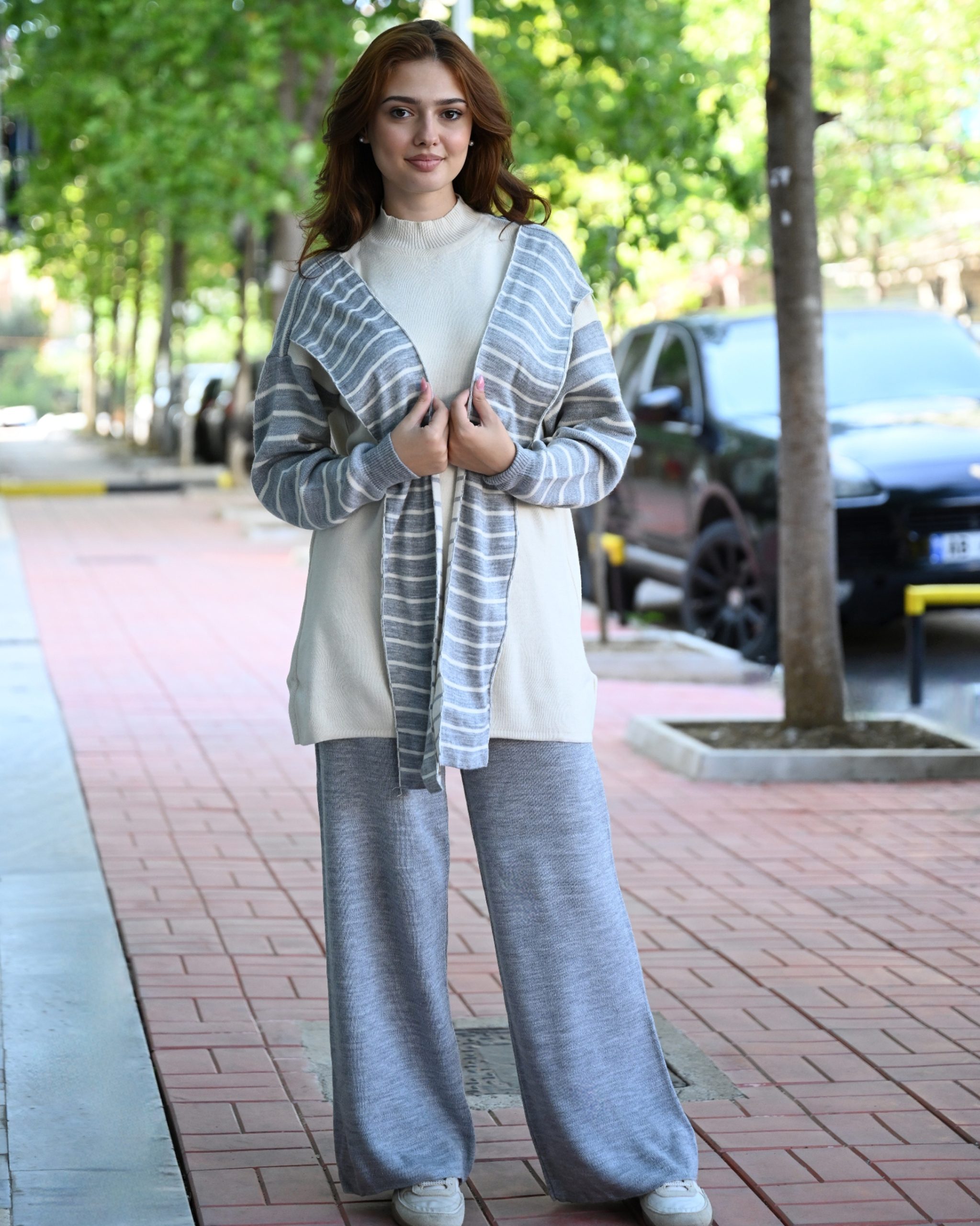 Set deve me detaje shalli – i ngrohtë, i butë dhe shumë komod, perfekt për stërvitje apo veshje të përditshme. Materiali nga deve siguron cilësi dhe rehati maksimale, ndërsa detajet me shalli i shtojnë stil dhe elegancë çdo pamjeje. Masa standarde, përshtatet nga S deri në 2XL.