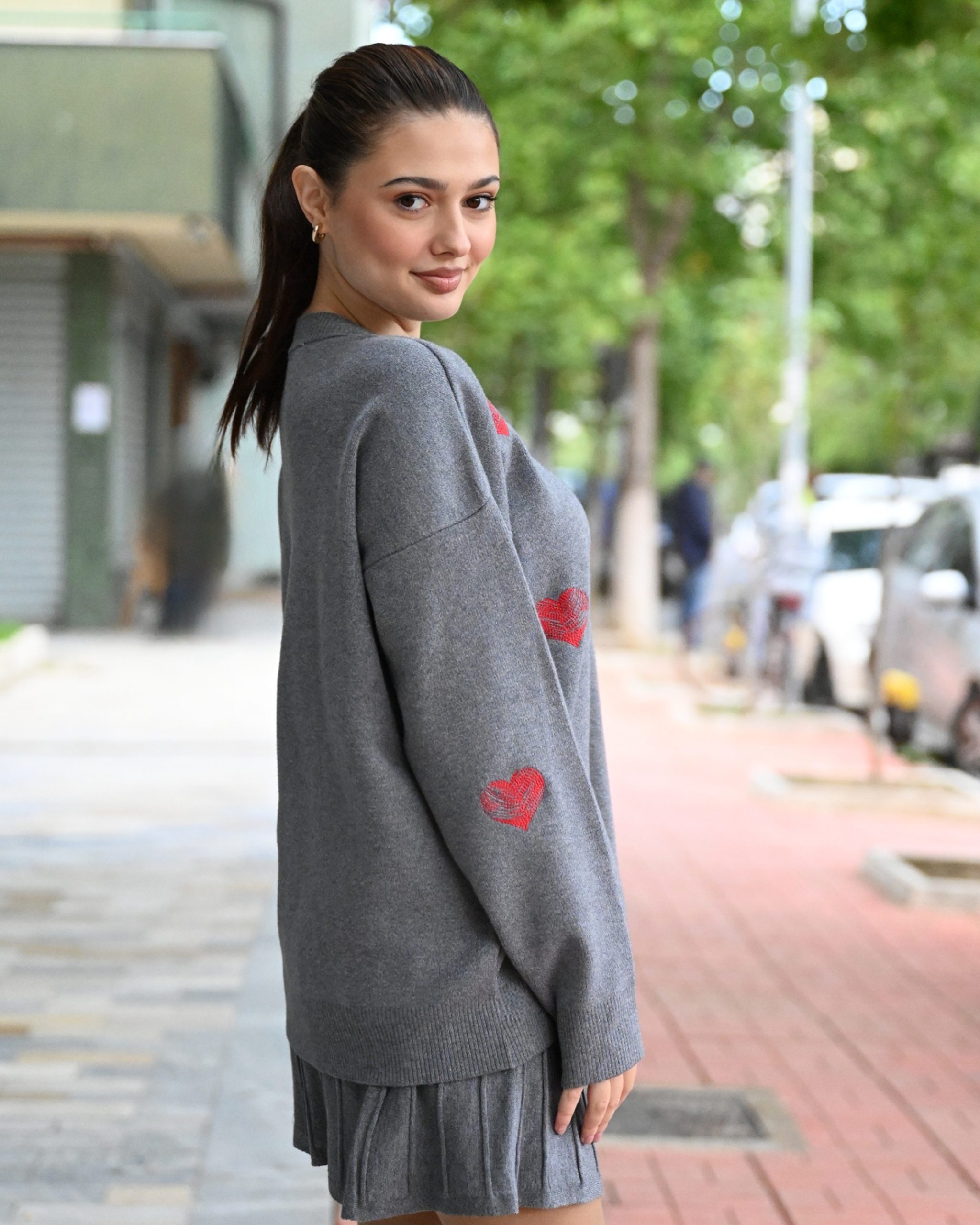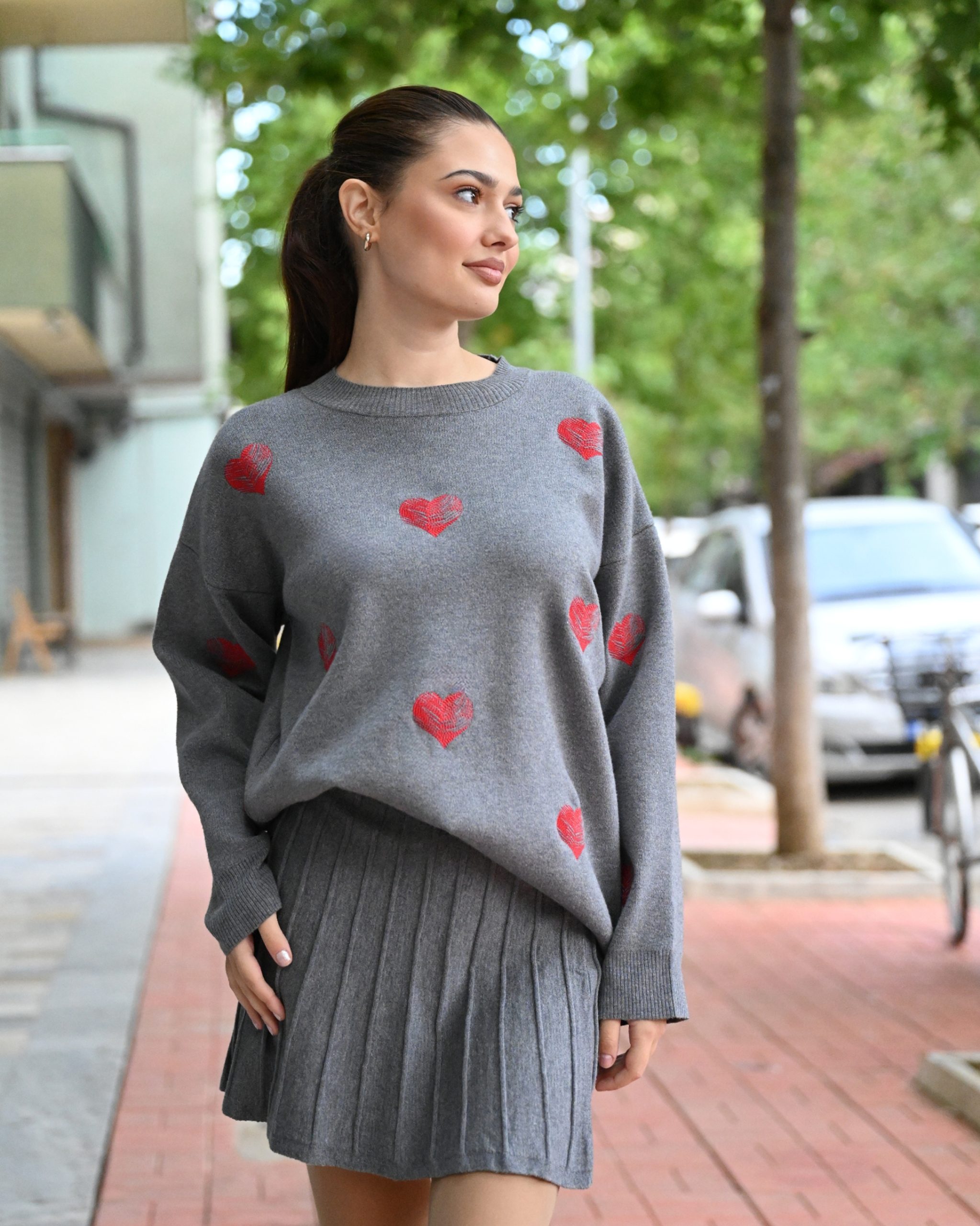 Seti për femra me bluzë dhe fund të shkurtër në ngjyrë gri vjen në masa standarde dhe ofron një pamje moderne, elegante dhe të rehatshme. Ngjyra gri e bën të lehtë për t’u kombinuar me çdo stil dhe aksesor, ideale për çdo rast.